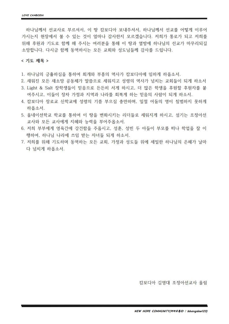 캄보디아 김영대 선교사소식