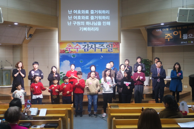 추수 감사절을 맞이하여 하나님께 영광 드리는 찬양 축제가 11월 20일 오후 예배 후에 있었습니다.모든 성도가 한 마음이 되어 기쁨과 감사로 하나님께 찬양을 드렸습니다.
